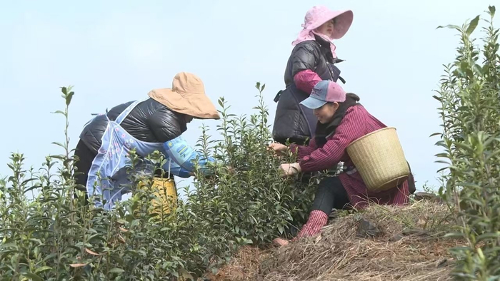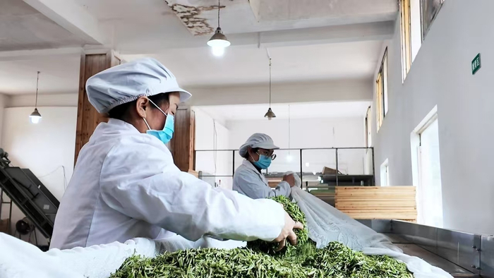贵州哚贝古茶开发有限公司副厂长林荣高介绍:“我们现在开始春茶开始采摘了,现在每天大概能采个300-400斤的茶青,我们主要是做翠芽为主,也少量地做毛峰,我们采来的鲜叶是当天采来之后,到晚上进行摊凉,把它摊凉好之后,就第二天早上清晨的时候进行杀青,然后把茶叶当天和第二天全部做完。”